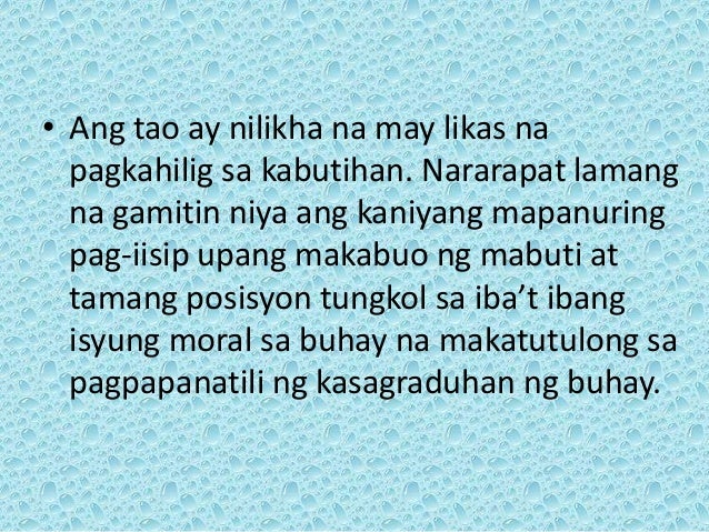Angbuhay ng taoay maituturingna pangunahing pagpapahalagaAngisang tao ay hindimaaringgumawaat mag-ambagsa lipunan kung walasiyang buhay De Torre 1992 Prepared by. Bago man tayo isilang binigyan tayo ng Diyos ng isip upang malaman kung ang ginagawa natin ay tama o mali. Paano maiiwasan ang mga isyung moral tungkol sa seksuwalidad.