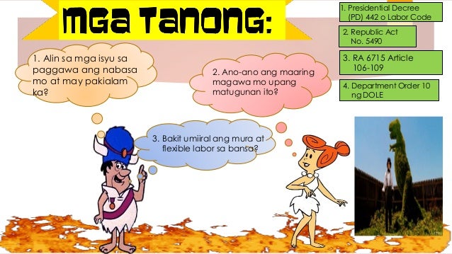 Subalit nahirapan ang dating Pangulong Marcos na maipatupad ang flexible labor dahil sinalubong at binigo ito ng mga demonstrasyon at kilusang anti-diktadura hanggang sa pagsiklab ng pag-aalsa sa EDSA noong 1986. Alin sa mga isyu sa paggawa ang nabasa mo at may pakialam ka. At 3 maaaring magtrabaho.