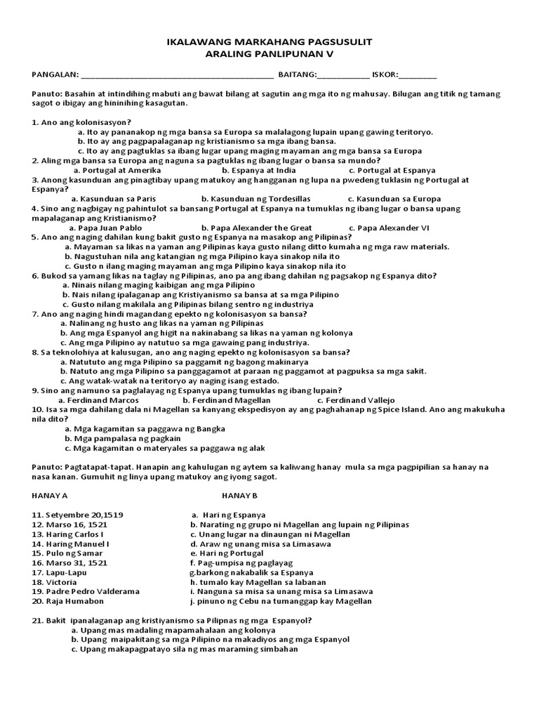 2nd Pt Ap 1 Docx Second Quarter Examination Araling Panlipunan Name Grade Score School Date Panuto Basahin At Intindihing Mabuti Ang Bawat Bilang At Course Hero