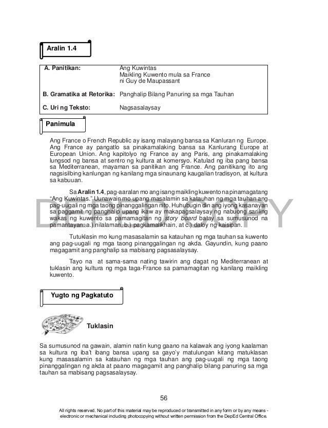 Ikatlong Araw Kahandaan Malalaman agad ng mga tagapakinig kung pinaghandaang mabuti ang pagtatalumpati sa panimula o introduksyong bibibigkas ng tagapagsalita. ANG SABI NG BIBLIYA. Ang katangian ng makasining na tula ay ang sikad na damdamin at lawak ng pangitain nito.