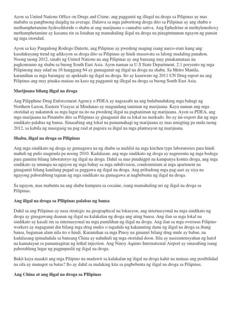 Sa malawakang kahulugan kinabibilangan ang mga bawal na gamot ng mga produktong drogang may kapeina tabako mga nalalanghap na sangkap o mga inhalante ang marihuwana o cannabis heroina at mga isteroyd. Dahilan o sanhi ng pag aalsa ni sumuroy dahilan o sanhi ng pag 1. Tulad na lamang ng simpleng patakaran na iwasan ang gumamit ng ilegal na gamot na droga ngunit tayo ay patuloy pa rin natin itong sinusuway.