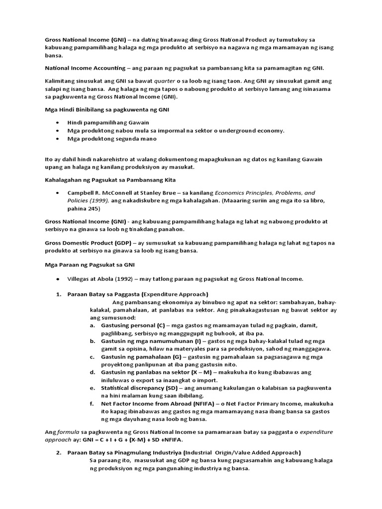 GNI Gross National Income Ito ay kabuuang halaga ng pera ang nakukuha ng tao at negosyo ng isang bansa. Aralin 1 Pagkompyut ng GNPGNI 1 2. Ginagamit ang realconstant prices GNI upang masukat kung talagang may pagbabago o paglago sa kabuuang.